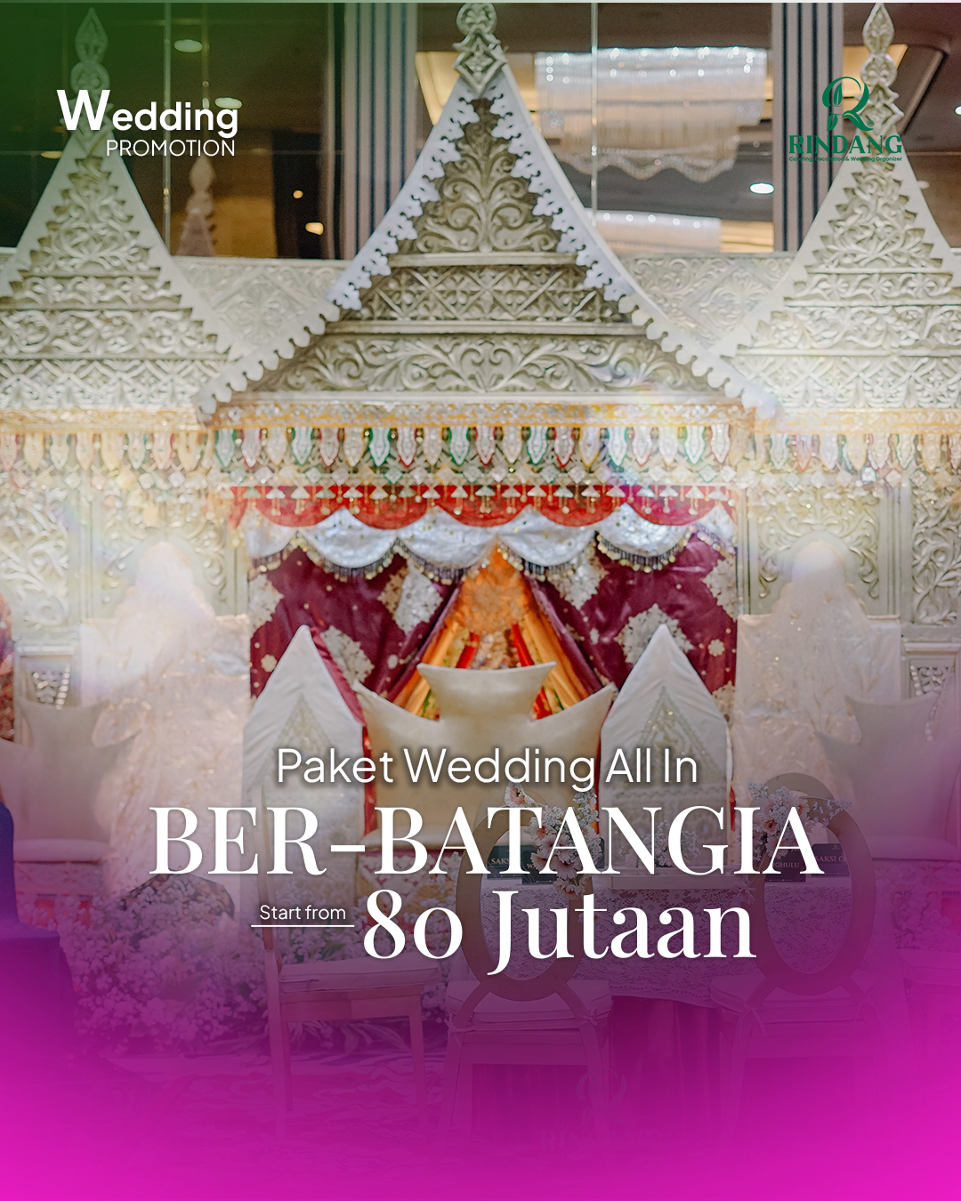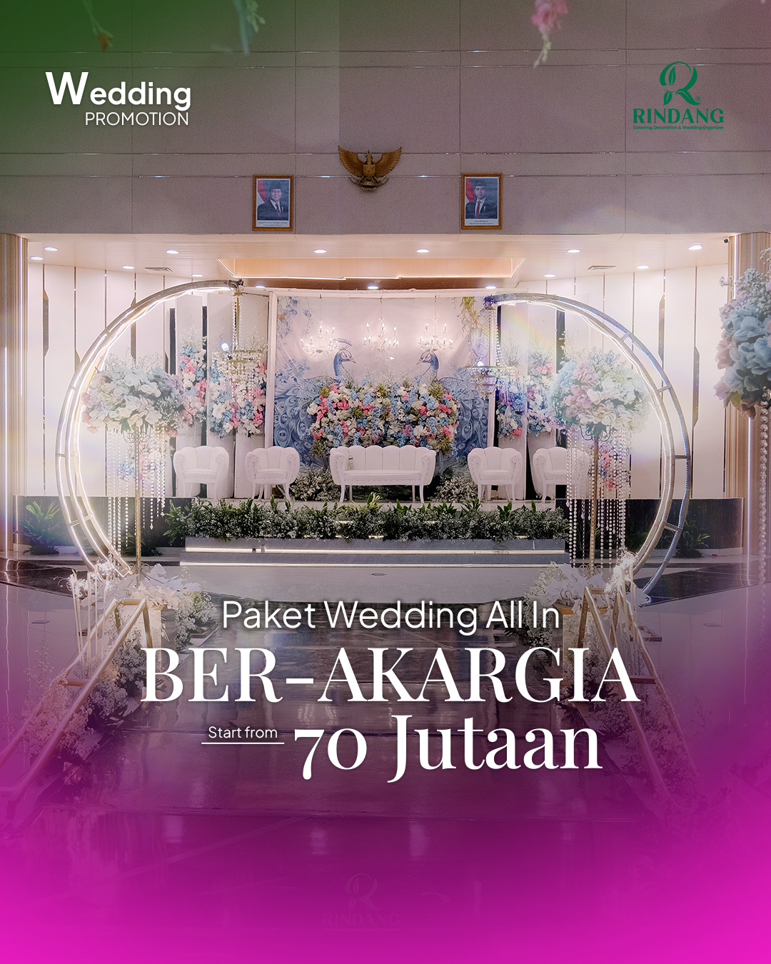 ✨ PAKET WEDDING ALL IN ✨ Paket eksklusif dengan dekorasi lebih mewah & pilihan menu catering lengkap dan pilihan venue lebih banyak.